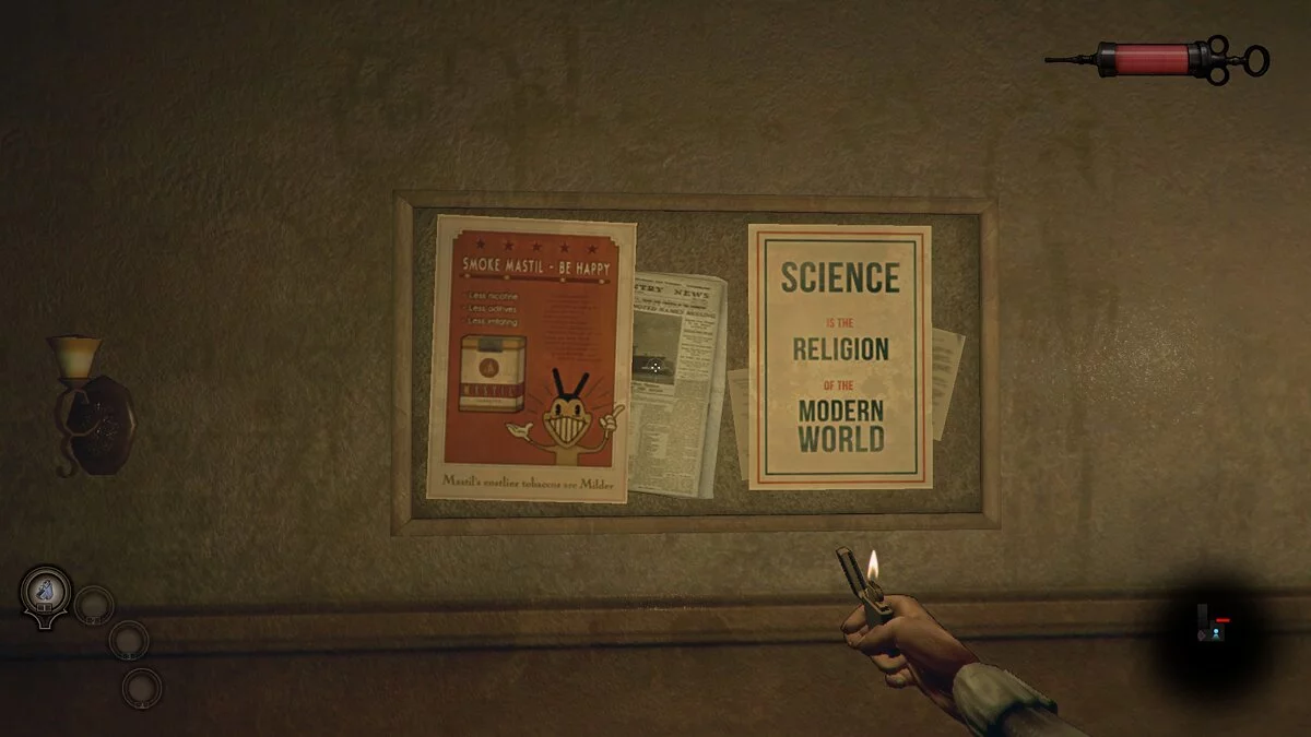 Основа Gone Home в его руках превратилась чуть ли не в игру по мотивам книг Стивена Кинга. Медицинские термины, обозначающие сложные и часто не самые высокоморальные явления, в местных текстах постоянно перемежаются с описанием личным мотивов, психоза и шизофрении, иногда с темами оправданных средств и даже контрастом с мыслями совершенно незнакомых с медициной, но опытных и целеустремленных людей. Словом, у авторам получилось как нельзя лучше создать осязаемую атмосферу, не забыв при этом о сценарии.