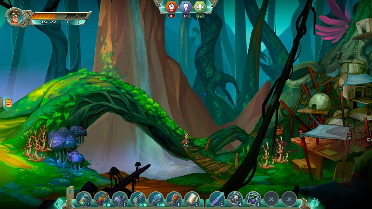 Помогает и то, что мы сами формируем характер нашего протеже, действуя так или иначе в различных игровых ситуациях. Всего есть три характеристики, которые можно развивать: решительность, находчивость и дружелюбность. Благодаря им мы можем прокачивать своего персонажа и открывать, например, новые рецепты для крафта. Эти характеристики не предопределяют итог вашего прохождения, они лишь влияют на стиль игры и показывают общую картину поведения главного героя.