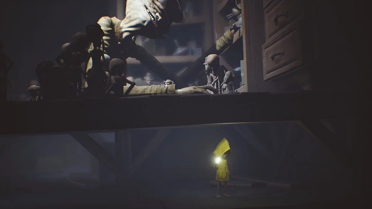 Главной героиней игры является маленькая девочка, которая «маленькая» в буквальном смысле. Все вокруг очень огромное, а Шестая с легкостью поместится даже в небольшой чемодан. Обитатели внутриигрового мира в основном также имеют внушительные размеры, из-за чего несложно догадаться, что как только мы попадемся на глаза своему врагу, он без особого труда сможет нас раздавить. Видимо эта часть игры перекочевала из серии LittleBigPlanet, к которой в свое время приложила руку Tarsier Studios.