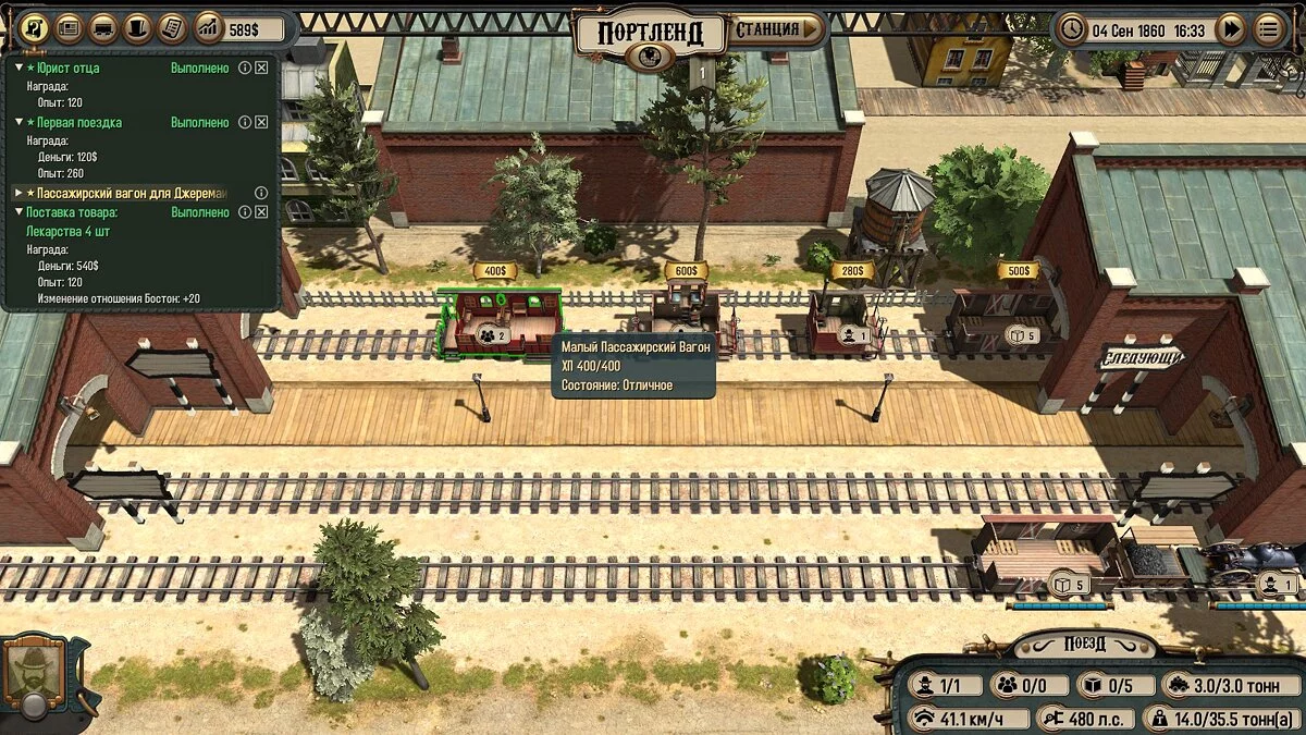 Но задания — не единственный способ заработка. Можно действовать как в любой похожей стратегии, перекупая товары в одном месте и продавая там, где их нет, или где они стоят дороже. Это уже намного сложнее, и нормально получать прибыль от такой деятельности можно будет только на поздних этапах. А там уже и ставки гораздо выше. Во-первых, появляются новые виды локомотивов, быстрые и прожорливые. Во-вторых, вагоны тоже нужно покупать, и чем мощнее локомотив, тем больше вагонов вам необходимо прицепить. Они варьируются от одноместных коробок для команды до просторных пассажирских купе.
