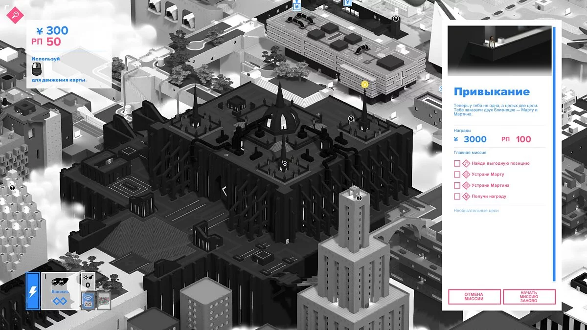 Главная прелесть игрового процесса Tokyo 42 это личная свобода. Прокладывать маршрут через город, выбирать позицию для атаки, подбирать оружие, выбирать порядок прохождения миссий и даже менять внешность при необходимости — все это придется делать самому, а не по указке дяденьки из отдела геймдизайна. Игра дает возможности, а порядок их использования — это и есть процесс прохождения.