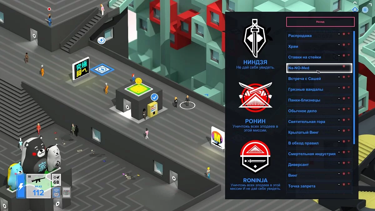 Так вот, Tokyo 42 — это полная противоположность. Тут нет ни брутальности, ни скоротечности. Здешние бои выглядят как обмен мыльными пузырями. Видимо, тоже проделки Nanomed, чтобы люди не убивали друг друга чересчур активно.