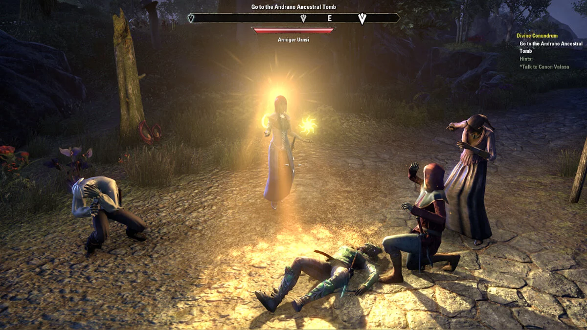 Во-первых, есть что-то вроде основного сюжета, связанного с помощью одному из трех живых богов данмеров — Вивеку.