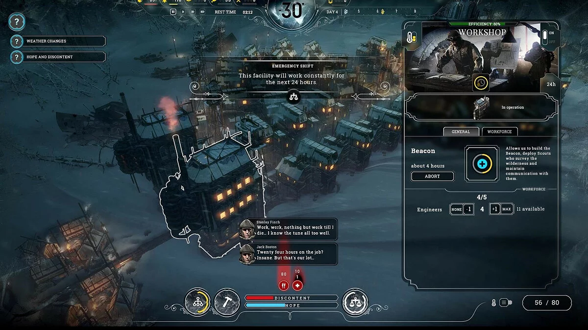 На днях разработчики из 11 bit studios представили геймплейный трейлер предстоящей стратегии с элементами выживания Frostpunk. Трейлер длится чуть меньше двух минут и включает в себя демонстрацию игровой локации и механики. Игра перенесет геймеров в заснеженный мир, в котором оставшиеся в живых люди должны выживать, создавая всевозможные постройки и приспособления. Выход Frostpunk запланирован на этот год для PC-платформы.