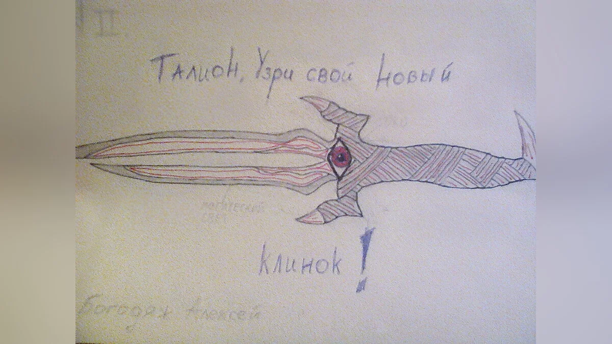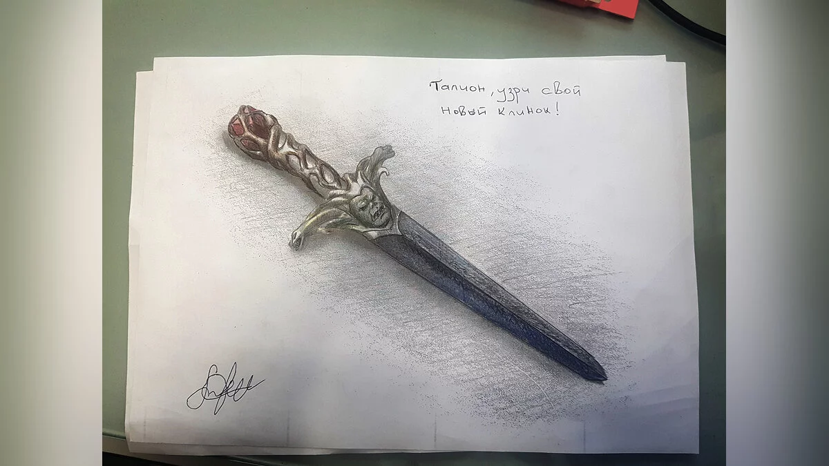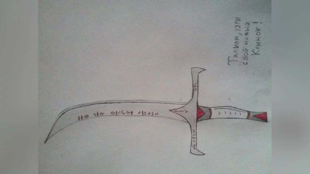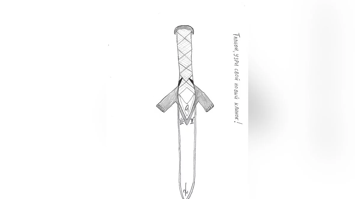 — На рисунке должна быть надпись «Талион, узри свой новый клинок!»;
