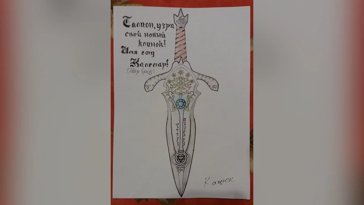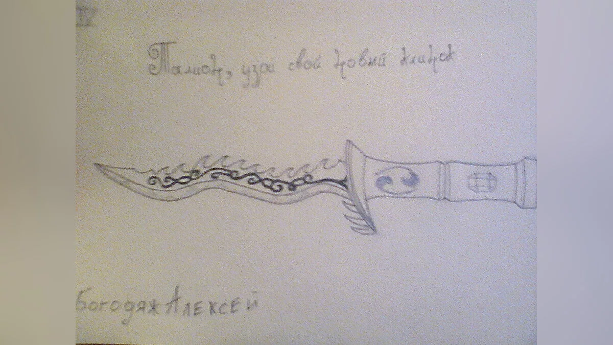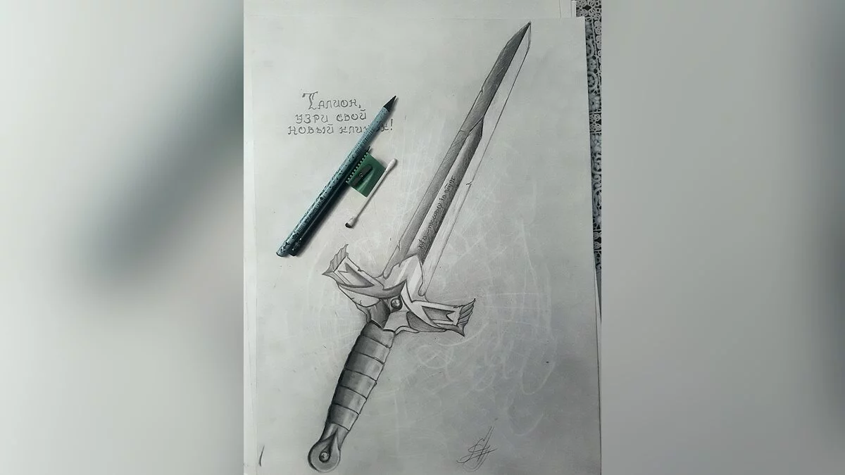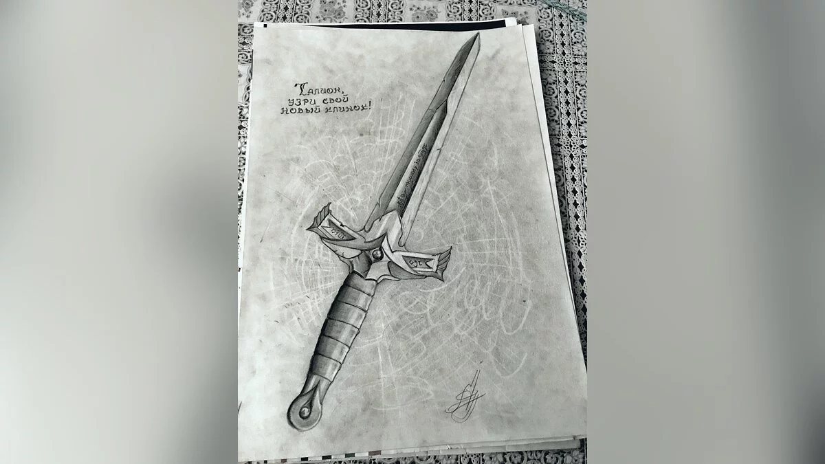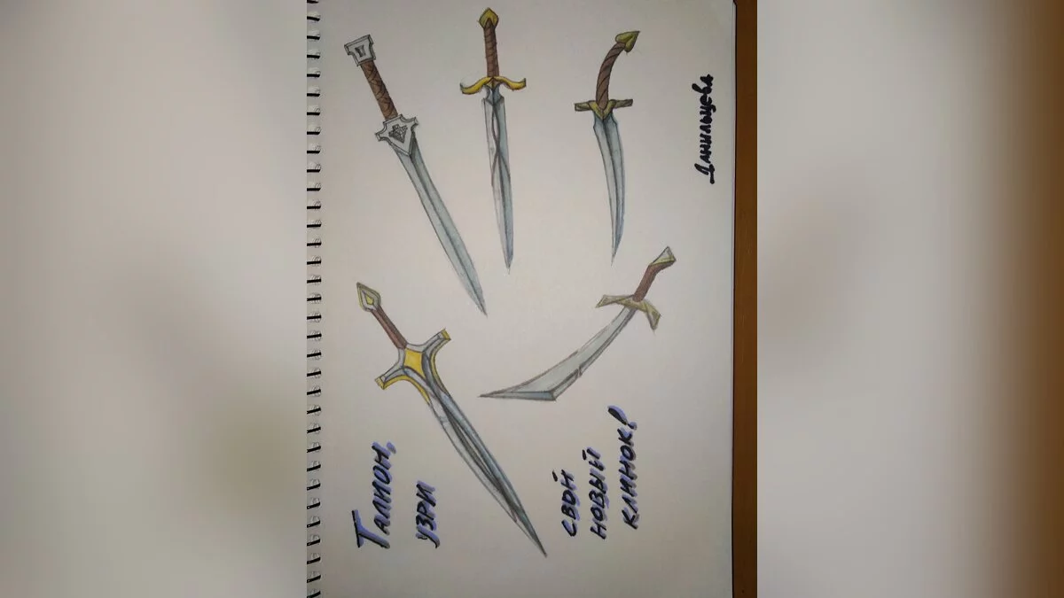 — На рисунке должна быть надпись «Талион, узри свой новый клинок!»;