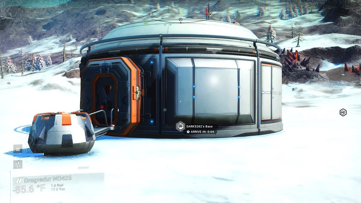 Неподалеку от той же базы он нашел группу коммуникационных терминалов, висящих прямо в воздухе. В No Man's Sky игроки не могут располагать объекты без опоры. Судя по всему, когда-то на месте пустыря была гора, владелец терминала даже оставил на нем сообщение о том, как он карабкался на высокий участок, чтобы построить на нем свою базу.