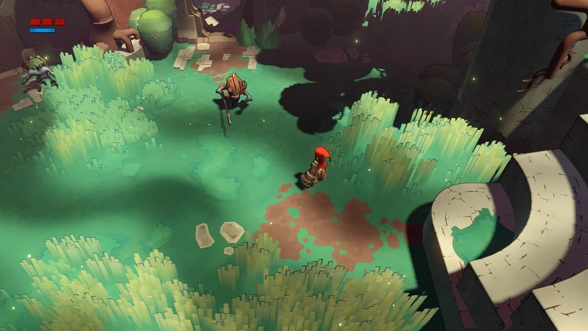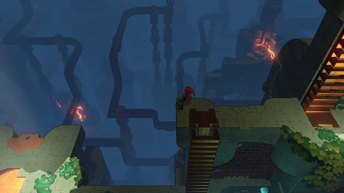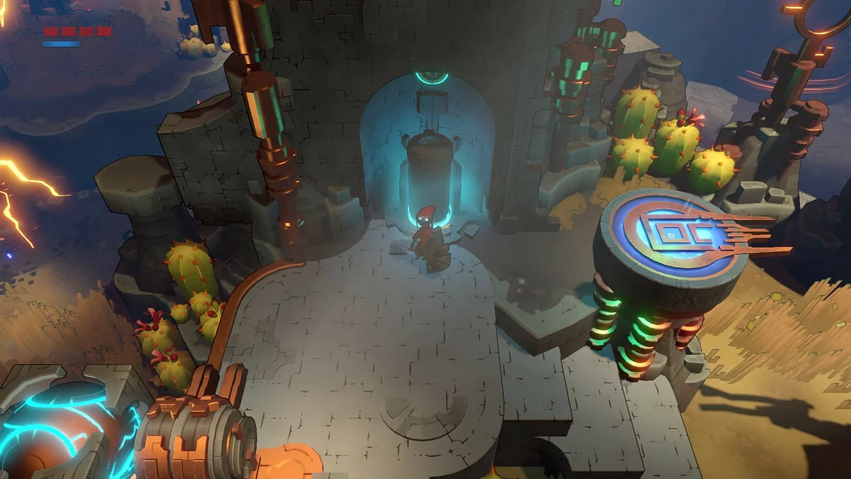 Помимо простоты геймплея и головоломок, следует обратить внимание на слабость механики Hob в плане прыжков и других акробатических элементов. То есть все, что относится к Hob, как к платформеру, вызывает не очень положительные эмоции. Например, если подойти к краю обрыва для того же прыжка, то персонаж сам свешивается вниз и также быстро забирается обратно. Иногда это приводит к смерти нашего протеже, иногда просто выводит из себя, но проблема повторяется из раза в раз, а не только в конкретных местах. Игра очень требовательна к точности управления, и если геймпад не ваш вариант, то крепитесь.