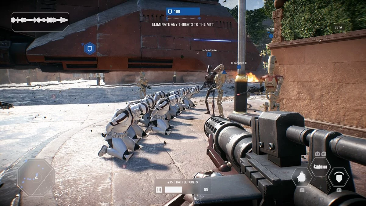 Также в бете показан абсолютно новый для франчайза режим, в котором бои идут по определенному сценарию. Например, на планете Набу силы сепаратистов осаждают дворец. Сначала дройды высаживаются на главной улице города и вынуждены пробиваться к ближайшему стратегическому объекту — арке. Там их встречают клоны, которым дана задача держаться любой ценой.