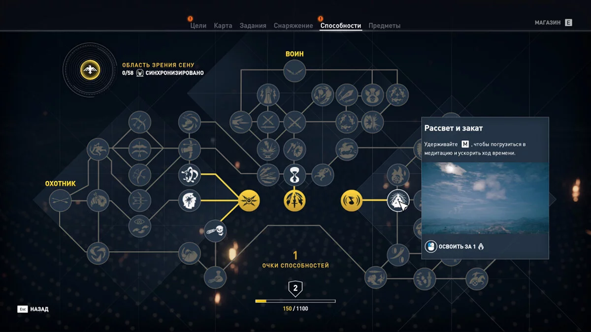 Древо навыков сделано просто, но вполне позволяет экспериментировать с билдами и пробовать разные стили прохождения. Но является ли Assassin's Creed: Origins полноценной ролевой игрой? Однозначно нет, так как проект лишен главного — сюжетного отыгрыша. Сюжет прямой как шпала.