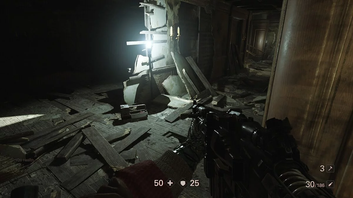 Комплект №7: Запчасти также лежат в пентхаусе, где вы найдёте Грейс и будете отражать атаки нацистов. Они лежат на втором этаже, в левом нижнем углу.