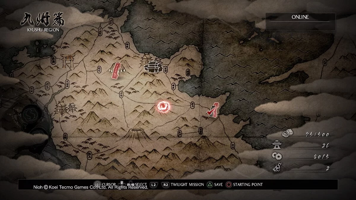 Вся игра разбита на уровни с большим количеством локаций и опциональных областей. На каждом уровне есть множество противников, ловушек, ценных предметов и, конечно, как минимум один босс. Из каждого убитого противника «выпадают» амриты. Эти магические камни являются мерилом силы и одновременной валютой в Nioh. С их помощью можно улучшать характеристики персонажа и покупать предметы у мирных персонажей.