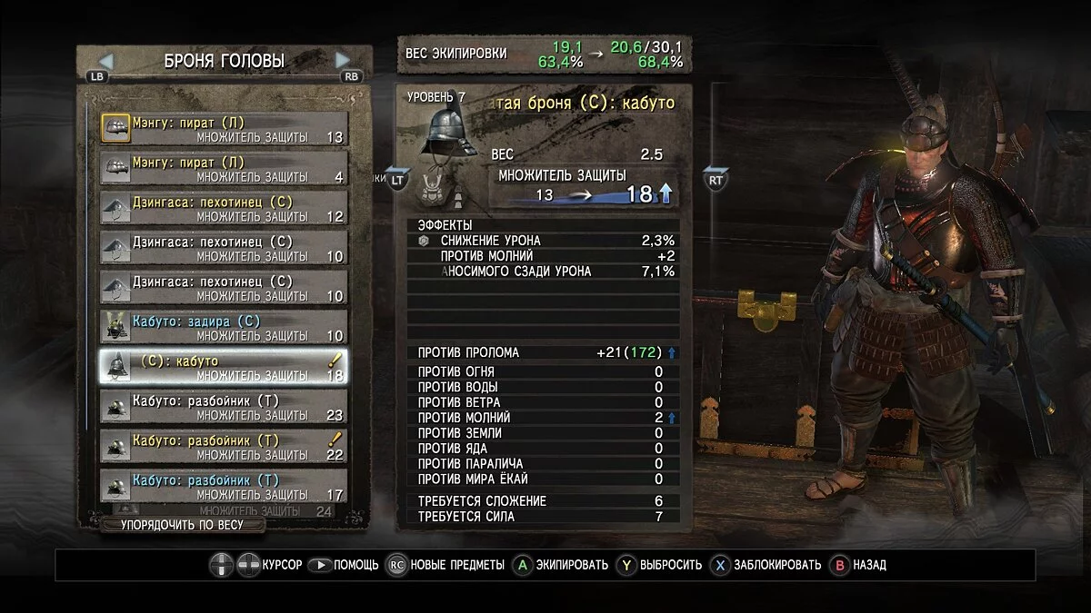 Во-вторых, Team Ninja проделали очень большую работу над системой предметов в игре. Как и в Dark Souls, главный герой может носить различное оружие и броню, но отличительной особенностью Nioh является генерация свойств у каждого «выпавшего» предмета. Грубо говоря, два одинаковых внешне меча могут обладать разными уровнями качества и абсолютно разным набором свойств.
