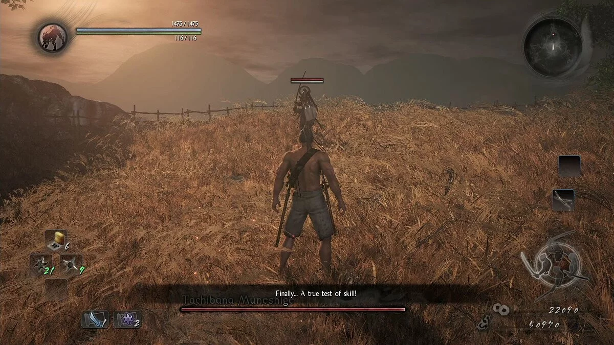 Когда Татибана Мунэсигэ расходует весь запас Ки, его можно сбить с ног мощной оглушающей атакой. При этом Татибана получит большое количество урона. После этого останется только добить ослабевшего противника, по возможности задействовав духа-хранителя.