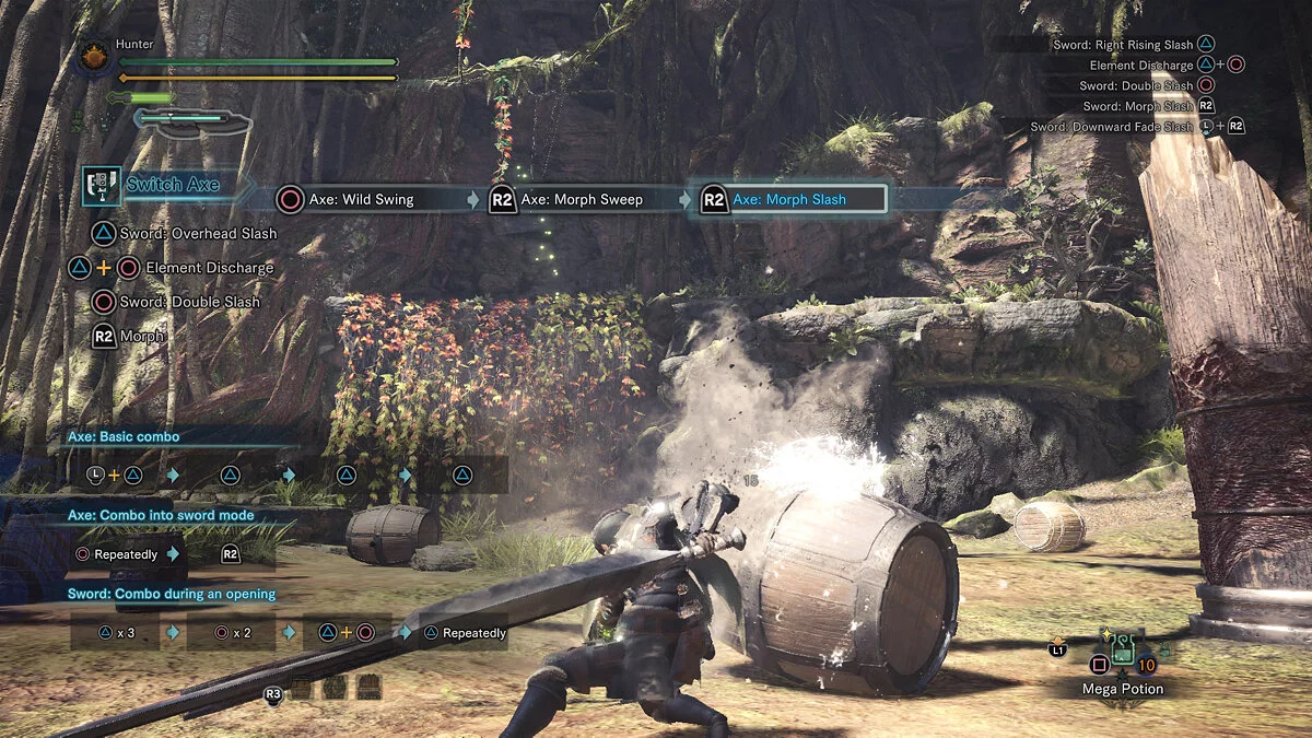 Всего будет доступно около 14 типов оружия, и сменять их можно будет в лагере между квестами. Игроки смогут опробовать их все, прежде чем отправляться выполнять квесты, если посетят тренировочный зал. Зелья и прочие расходные материалы будут представлены непосредственно в самих заданиях.