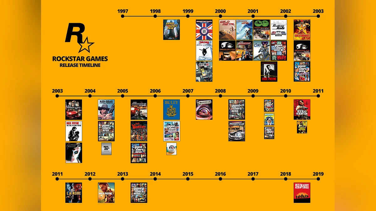 Если взглянуть на первые годы работы команды, то можно обнаружить по 3-5 релизов каждый год. Например, в 2001 году Rockstar Games выпустила сразу 5 игр: