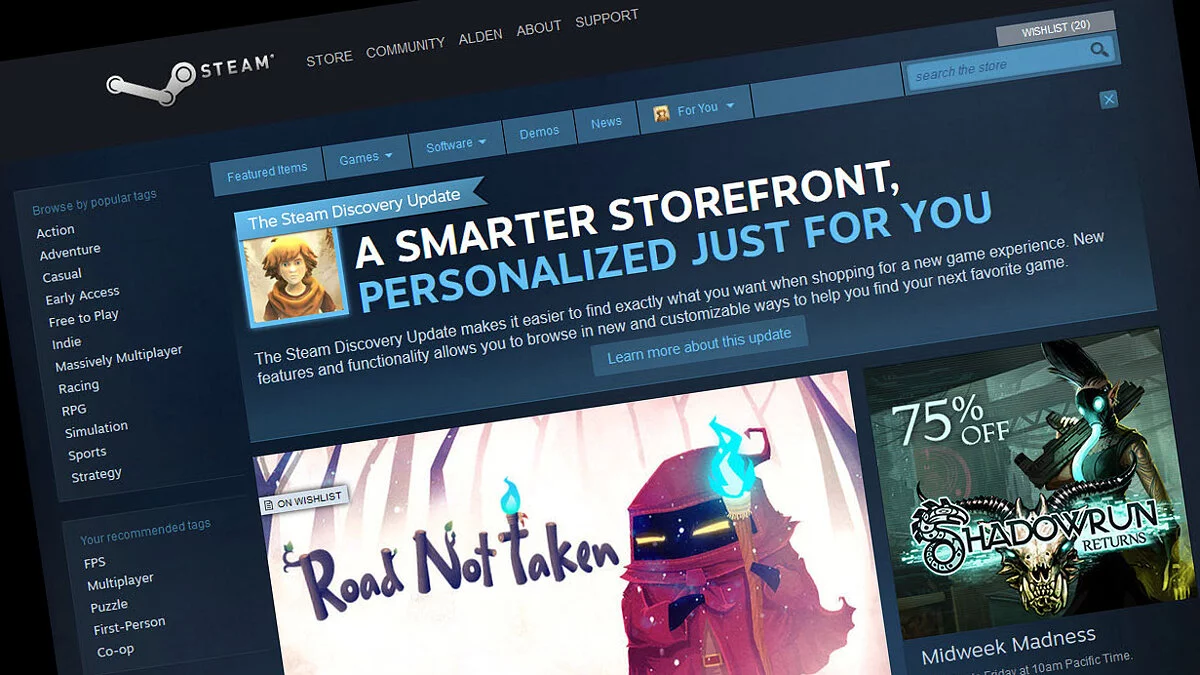 Valve уже много лет знают об этой проблеме и постоянно стараются оптимизировать алгоритм отбора игр для показа каждому отдельно взятому пользователю. Эта система называется «Discovery», и она анализирует игры на аккаунте пользователя, чтобы понять, какие жанры его интересуют.