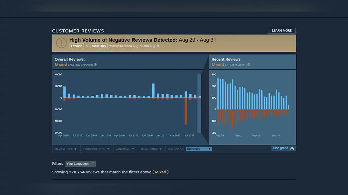 Проблема в том, что система обзоров создавалась не для таких манипуляций. Игра не должна иметь супер-низкий рейтинг и терять потенциальную аудиторию только потому, что вчера кто-то вбросил ее на китайский форум и спровоцировал появление 10 тысяч отрицательных отзывов с просьбой добавить китайский язык.