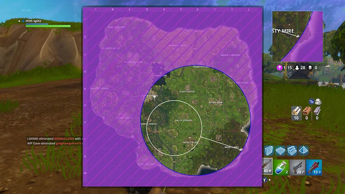 К сожалению, все эти места пользуются большой популярностью и поэтому представляют для вас опасность. Tilted Towers — это бойня. Haunted Hills — место, где вас быстро убьют. Даже такая локация, как Shifty Shafts, где край острова создает естественную защиту с запада, является очень опасной.