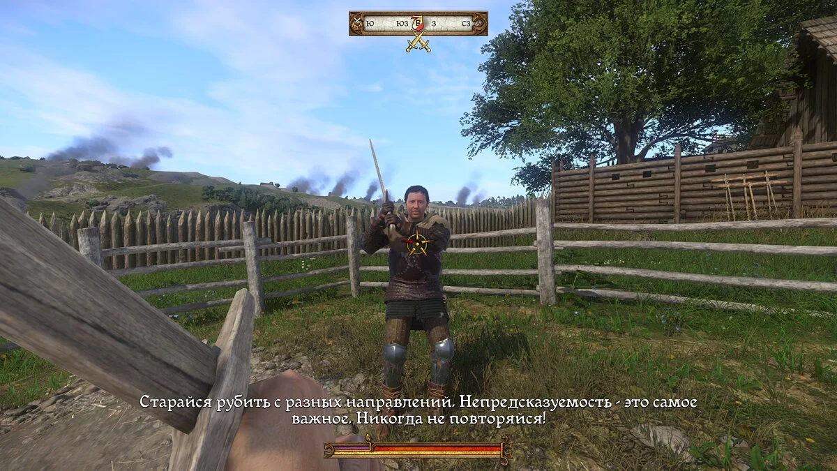 Сражения в Kingdom Come: Deliverance происходят размеренно, но жестоко. Тут рубятся обычные люди, не обладающие сверхъестественными способностями. Каждый удар отнимает выносливость и снижает здоровье оппонента. Если пораженная часть тела закрыта доспехом, то он принимает на себя часть урона, и тогда вместо здоровья снижается «стамина».