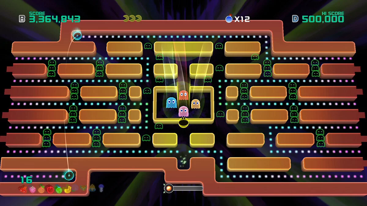 Кроме грузных ААА игр в распоряжении Bandai Namco на данный момент находятся права на серию Pac-Man. Желтый колобок, жадно поедающий фрукты, претерпел множество метаморфоз за почти сорокалетнюю историю игры. Однако самым удачным его появлением в наше время можно назвать Pac-Man Championship Edition DX+.