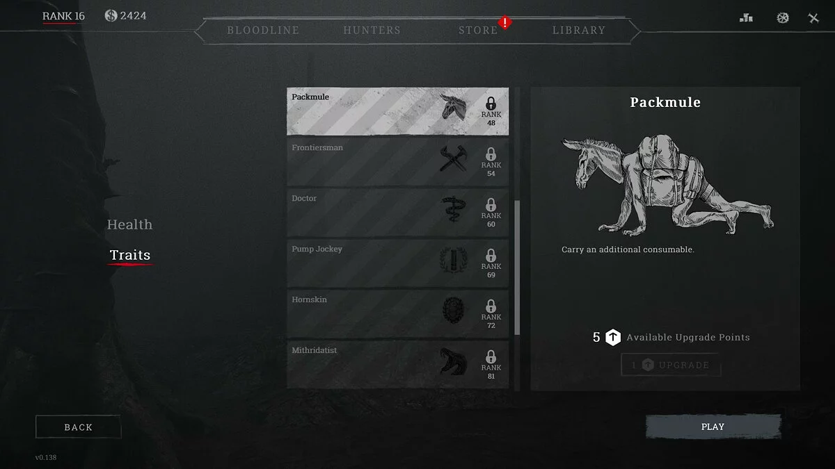 Да, в игре есть перманентная смерть (Permadeath). Гибель персонажа равносильна его полной потере вместе со всем снаряжением и умениями. После этого, конечно, игра не заканчивается, ведь можно нанять другого охотника, выбрав одного из 4 новых кандидатов, но это будет довольно слабый персонаж, которого предстоит развивать с нуля. Впрочем, система постоянной прогрессии в игре все же есть.