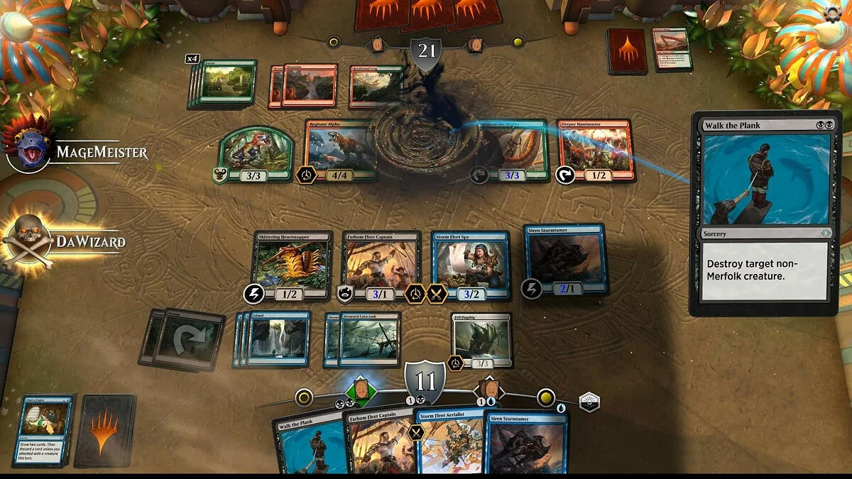 Например, некоторые карты позволяют призвать Planeswalker-а — другого мага, который имеет сразу несколько способностей. А сами существа могут иметь множество особых способностей, которых уже сейчас больше, чем в HS. Сразу видно, что Arena — это адаптация игры с 25-летней историей!