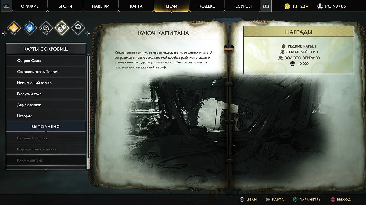 Капитан корабля — это персонаж, который появляется во многих частях серии. Он заплыл в рот к Гидре в оригинальном God of War, вернулся в God of War 2 и о нем упоминалось в God of War 3. На этот раз к нему тоже есть отсылка в виде квеста Карты Сокровищ, который называется Ключ Капитана (The Boat Captain’s Key). Вот его описание: