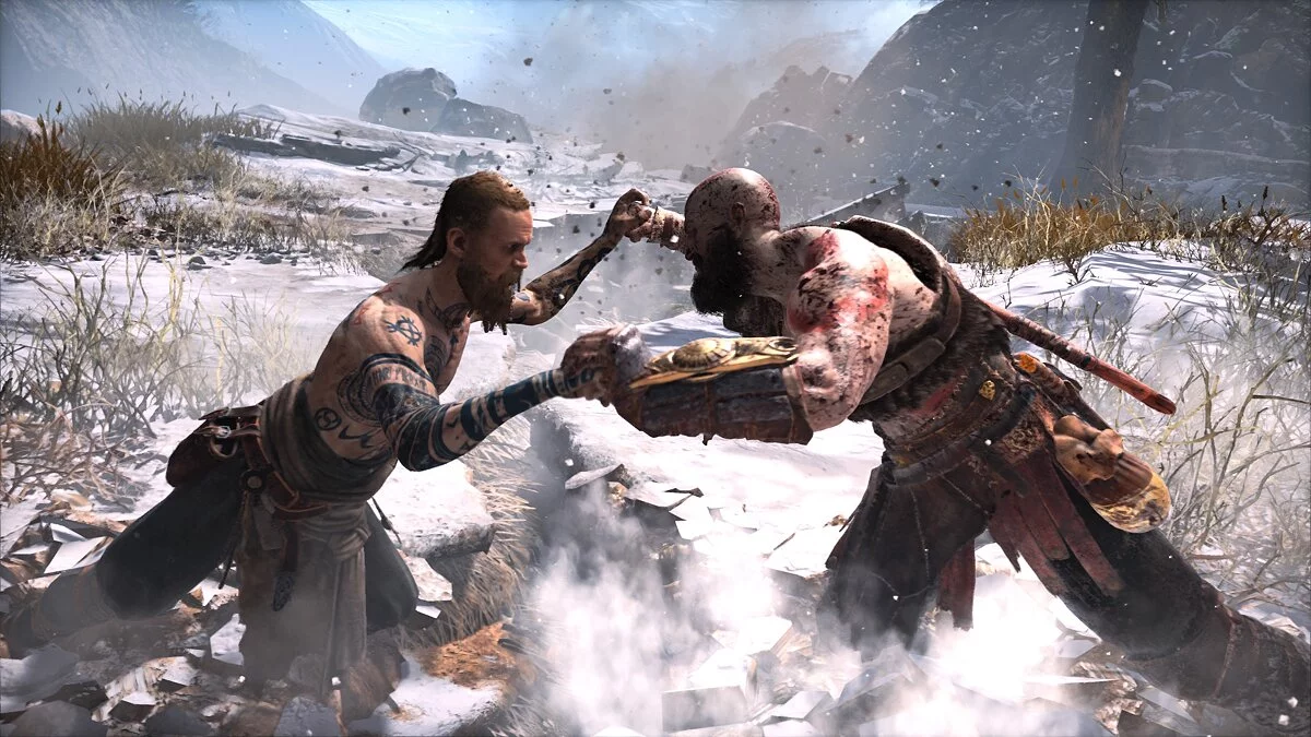 От QTE-элементов почти избавились, оставив их только в тех случаях, когда это действительно выглядит зрелищно и способно приятно удивить. Само же сражение теперь происходит в несколько ином формате, нежели в предыдущих играх серии. Теперь вместо яростного нажатия на одну-две кнопки, необходимо изучать поведение противника и продумывать наперед его действия. Также нередко бывает, когда нужно еще и готовить определенные навыки для битвы с сильным врагом. В определенный момент битвы при накоплении шкалы ярости Кратос даже может перейти в специальный режим, в котором он не боится получить урон и месит врага, как в старые добрые времени во время битв с древнегреческими богами.