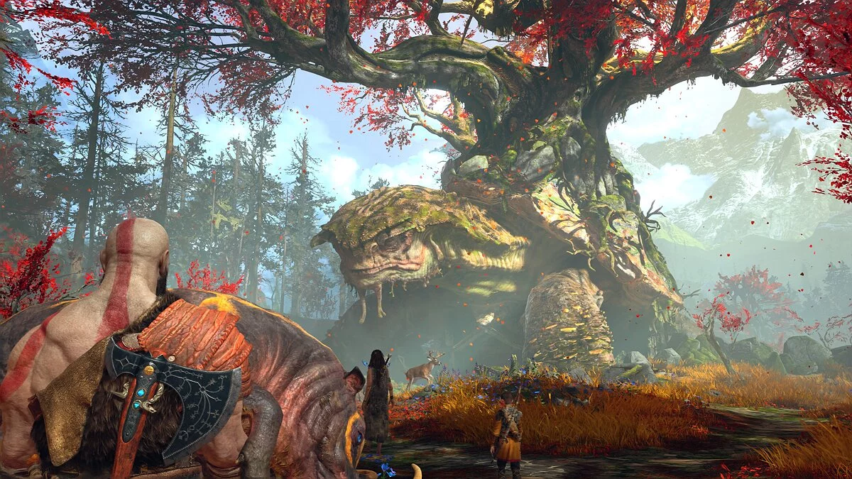 Красивых локаций в игре ровно столько, сколько хватает чтобы заполнить несколько гигабайт консоли зрелищными скриншотами. Кратос и его сын по мере своих странствий побывают в нескольких мирах, доберутся до вершины снежной горы, увидят огромную черепаху, а также смогут познакомиться с драконами и коснуться ко свету эльфов. Все это лишь малая доля того, с чем сталкиваются персонажи, поскольку God of War получилась неприлично богатой игрой на обилие качественного контента.