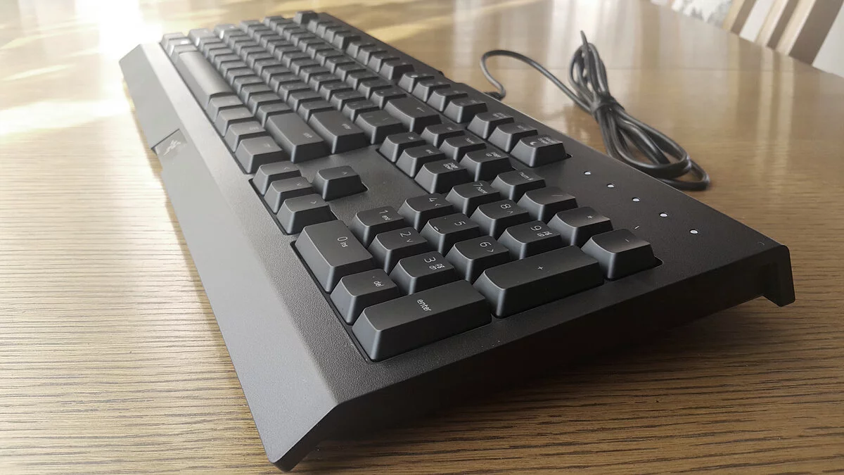 Хотя бы потому, что устройство имеет конструкцию, защищенную от проливания жидкости. Это куда важнее, чем 4 или даже 8 механических клавиш из особой, «геймерской» резины. Ведь у многих из нас были неприятные ситуации, когда дорогие механические клавиатуры «тонули» в чае, газировке и других напитках, которые являются завсегдатаями игровых столов.