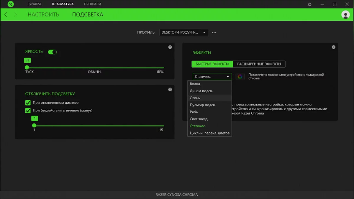 Самый интересный модуль — это Chroma. Без него Cynosa имеет только базовый функционал подсветки: