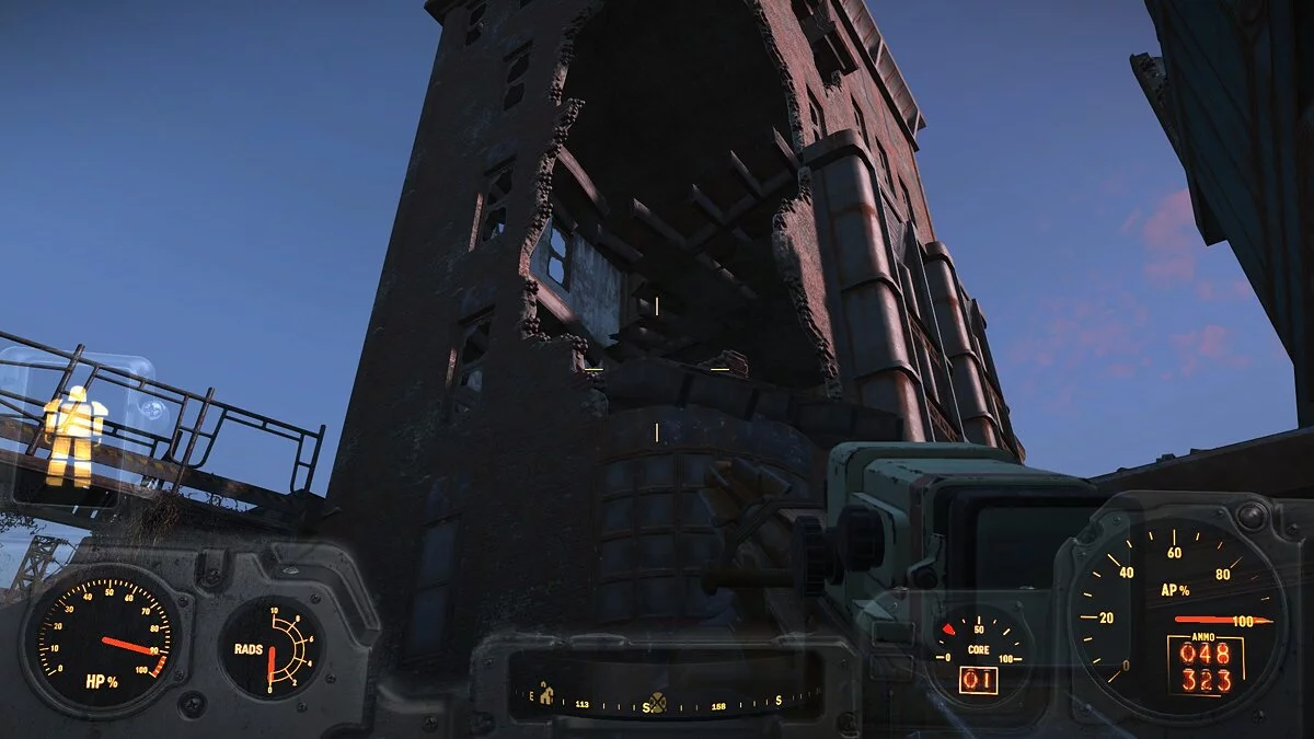 Доступ во второе по высоте здание в Бостоне открывается на поздних этапах игры. Примечательно, что и залететь с него со стороны не получится — оно слишком стройно построено, негде зацепится для следующего прыжка. Поэтому когда вы после основного квеста снова проникните внутрь, поднимитесь в силовой броне с реактивным ранцем на самый верх.
