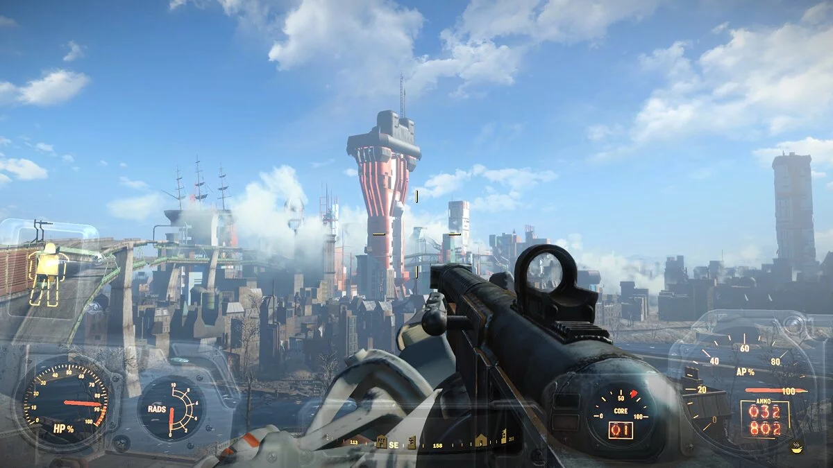 Эта часть города и сам хайвэй практически не повреждены, здесь достаточно подъемников, чтобы взобраться на своих двоих, но полное исследование крыш небоскребов потребует установить мод. Готовьтесь к бою — рейдеры, мусорщики, супермутанты и стрелки обжили небоскребы и все расположенные в Содружестве вертикальные уровни.