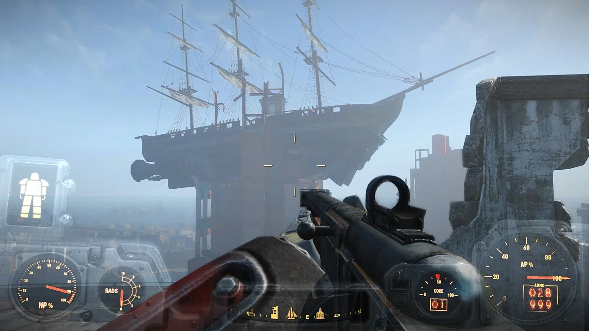 Если вы прошли квест «Последний рейс «Конститьюшн», то знаете, что роботам не удалось взлететь в небо, они протаранили один из небоскребов в центре Бостона и застряли. При старте движков капитан Айронсайд попросил вас покинуть корабль, чтобы вы случайно не улетели вместе, так что за провалом его планов вы наблюдали издалека.