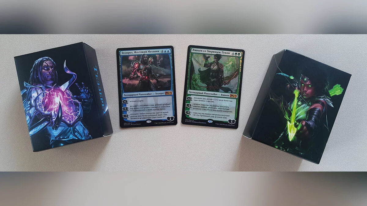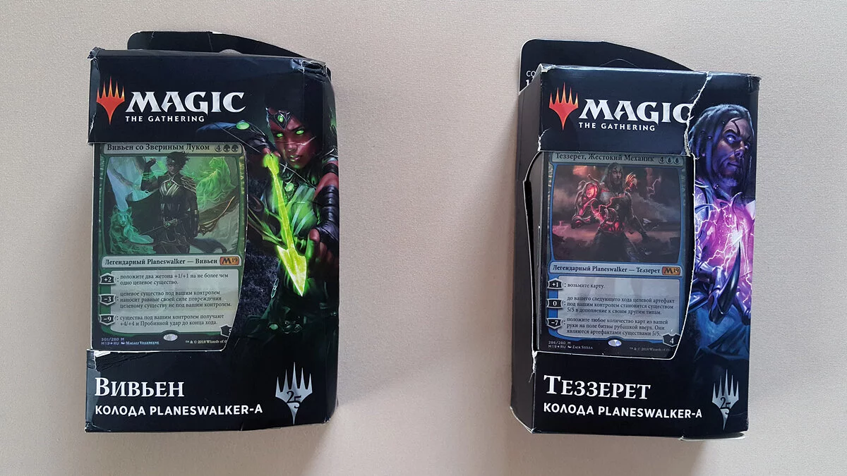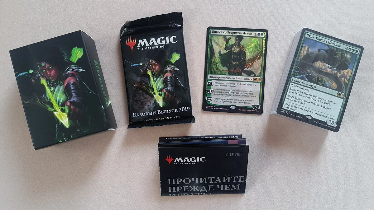 Наборы Planeswalker-ов в «Базовом выпуске 2019» стоят в среднем по 650 рублей. При этом изменилась комплектация. Теперь внутри помимо колоды только один бустер с 15 случайными картами, а не два, как раньше.