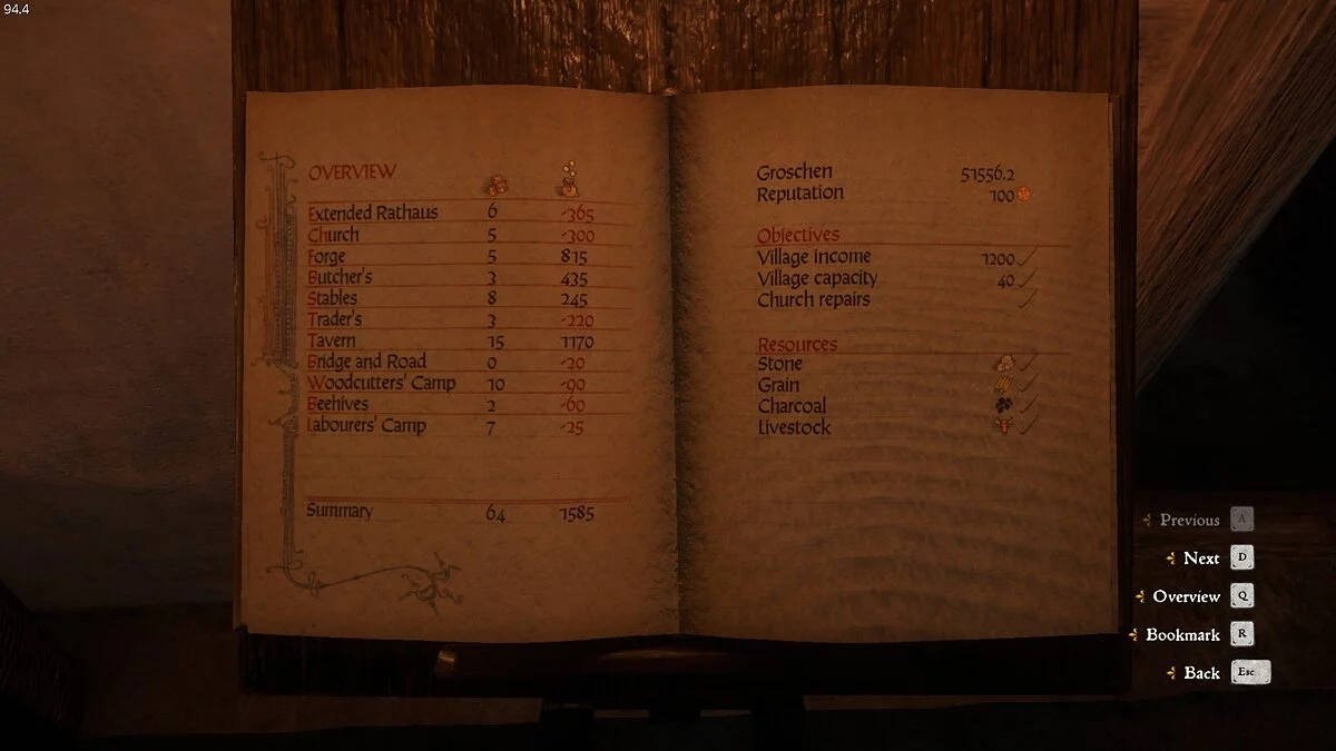 А затем он увидит, что для выполнения всех действий в поселении нужно использовать специальную книгу Рихтаржа. В ней описаны все постройки, статистика доходов и расходов, список поселенцев и вообще вся информация, которой нужно оперировать при развитии деревни. И если главный герой не научился читать у одного из писарей в игровом мире, то придется выбирать варианты наугад.