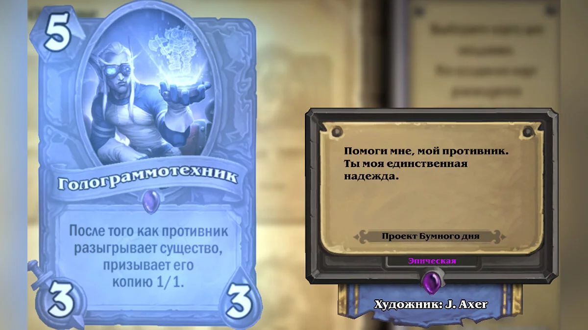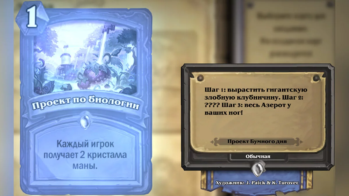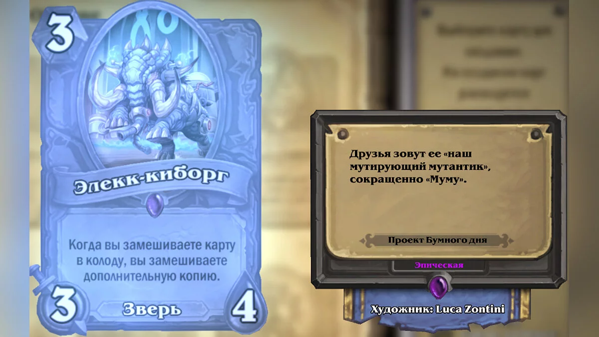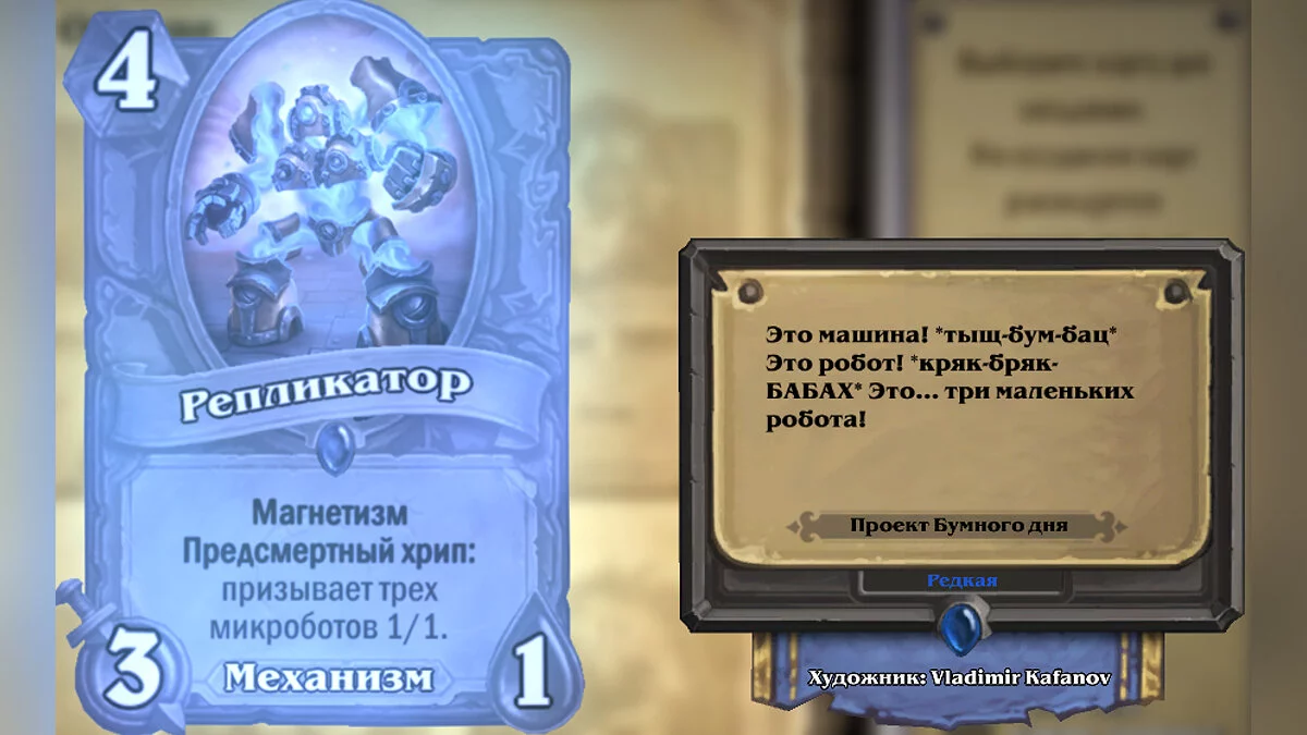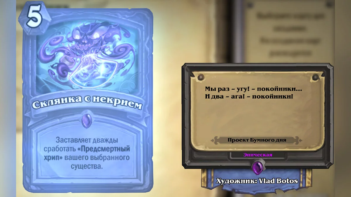 В описаниях карт Hearthstone: «Проект Бумного Дня» можно найти отсылки к «Стражам галактики», «Южному парку», «Мстителям», «Супермену» и даже «Владимирскому централу».