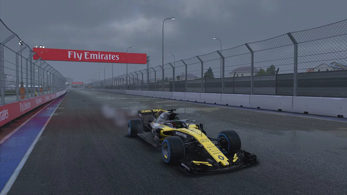 Графика еще в F1 2017 сделала серьезный прыжок вверх. F1 2018 не перешла на новый визуальный уровень, но по-прежнему выглядит очень красивой и проработанной игрой. Чего только стоит эффект дождя, который также влияет на физику автомобилей. Если приглядываться, конечно, в игре можно найти множество косяков. К примеру, текстуры болельщиков по-прежнему выглядят ужасно, а анимации лиц иногда слишком нереалистичны. Но кому нужны эти вещи, когда играешь в симулятор Формулы 1. Все, что касается гонок, в F1 2018 выглядит действительно красиво.