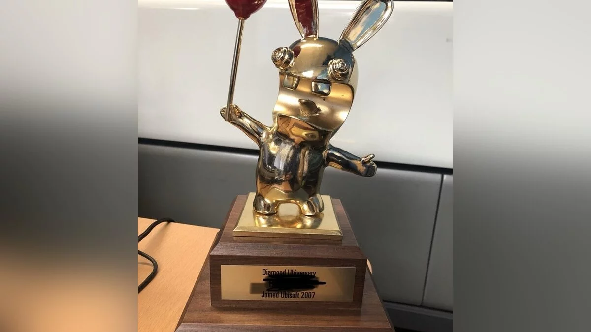 Золотая статуэтка кролика, вооруженного вантузом, досталась работнику, пробывшему в Ubisoft 10 лет. Персонаж взят из игры Rayman Raving Rabbids, выпущенной в 2006 году. Согласно подписи у основания, сотрудник устроился на работу в 2007 году.