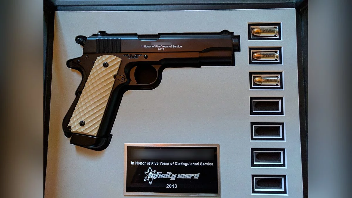За 5 лет работы в Infinity Ward, занимавшейся разработкой серии игр Call of Duty, можно получить пистолет, стреляющий страйкбольными пулями. Вместе с пистолетом в комплекте идут копии настоящих патронов с выгравированными названиями игр из серии. Например, 2 и 3 части Modern Warfare и Call of Duty: Ghosts.