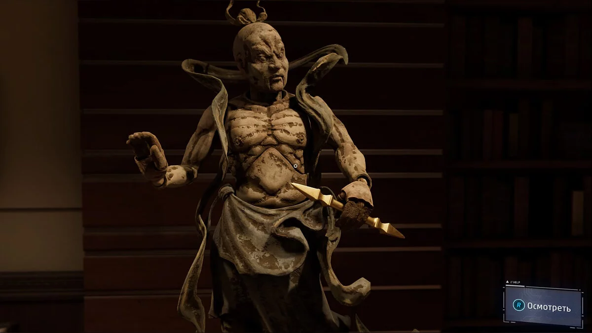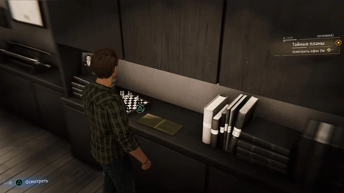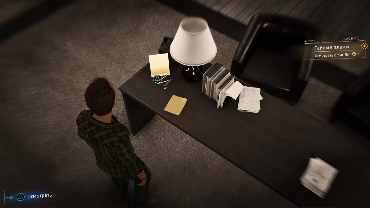 В кабинете осматриваем статую. Замечаем фото на столе и устанавливаем руки статуи в такое же положение. Вкладываем в руку специальный предмет. В конце Эм-Джей расскажет о папке, которую ищут противники.