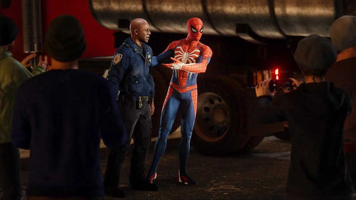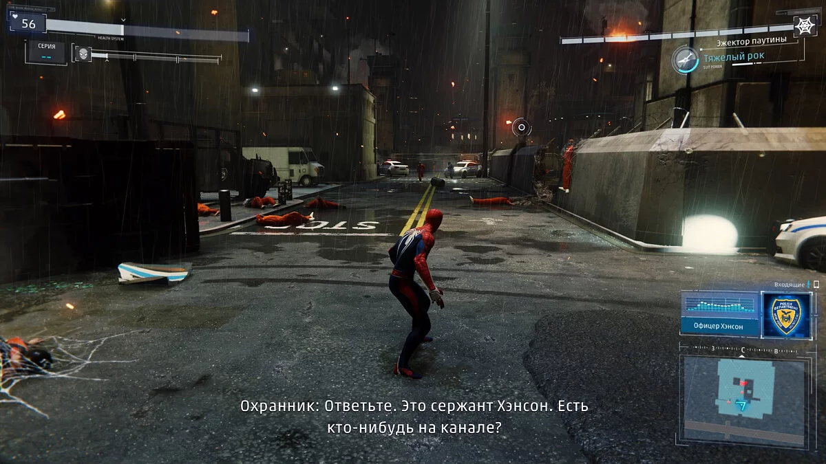 После кат-сцены вытягиваем грузовик. А полицейский вовремя появляется, чтобы спасти Человека-Паука. В награду за задание получаем опыт.