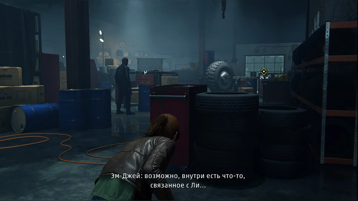 Поговорив с диспетчером отправляемся в гараж. Находим вентиляционную шахту, забираемся внутрь и осматриваем машину.