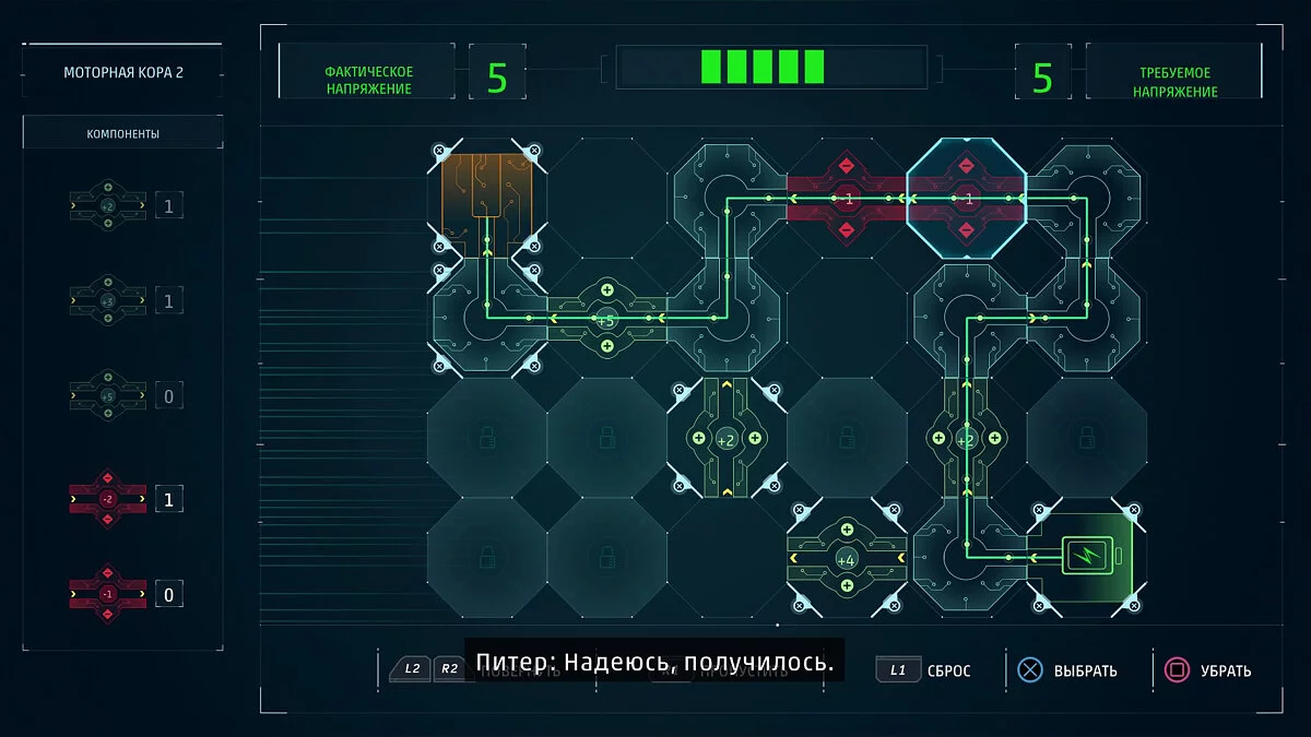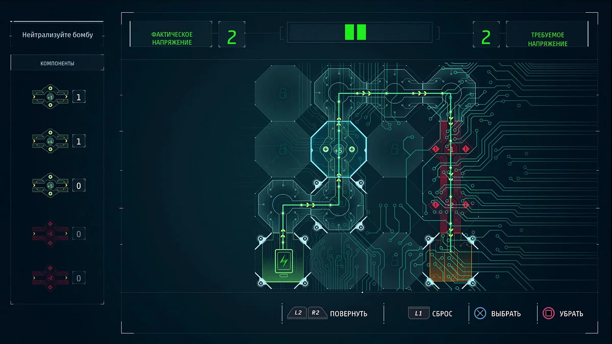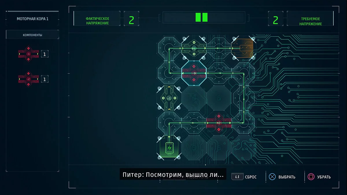 Чтобы починить протез проходим три мини-игры. Чиним: цепь сервопривода, контроль силового напряжения и подключаем сервомотор. Используем компоненты цепи, чтобы соединить цепь.