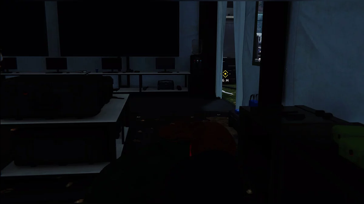 Теперь нам придется прятаться от Носорога. Взламываем прожектор, чтобы отвлечь его. Быстро бежим к подземному туннелю и проходим по нему до конца. Выходим из него, когда Носорог пройдет.