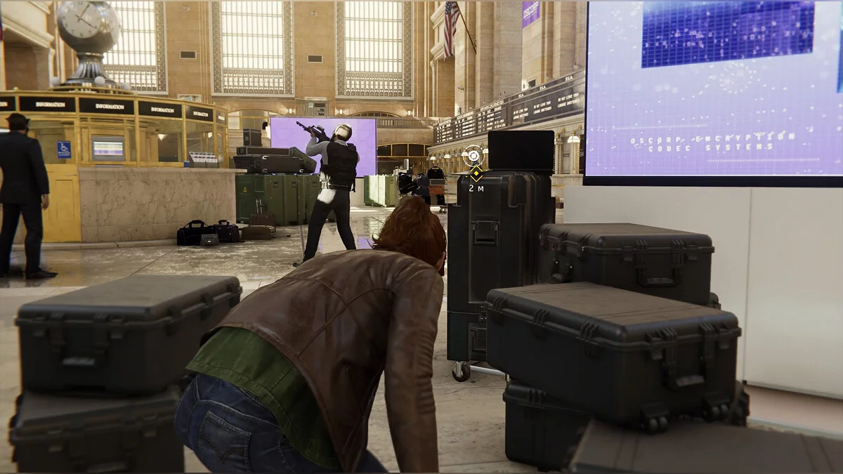 Добираемся до серверной и мешаем парням Фиска стереть все данные. Ползем по вентиляции и спрыгиваем на врага под решеткой. Остальных нужно добить за отведенное время. Если не успеть, то задание будет провалено. Говорим с Фиском, копируем данные и ждем новых врагов.