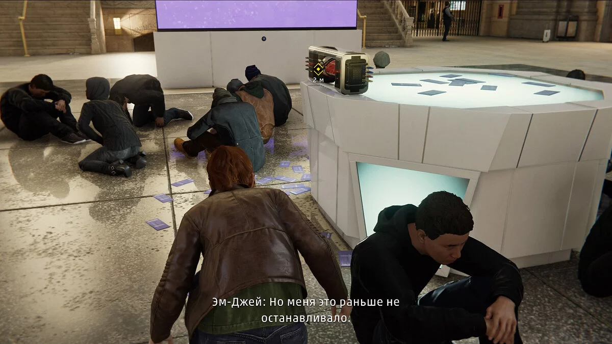 Далее можно будет посмотреть видеозапись инцидента с Ли. Эм-Джей скопирует информацию, но испугается паука, чем и привлечет внимание охраны.