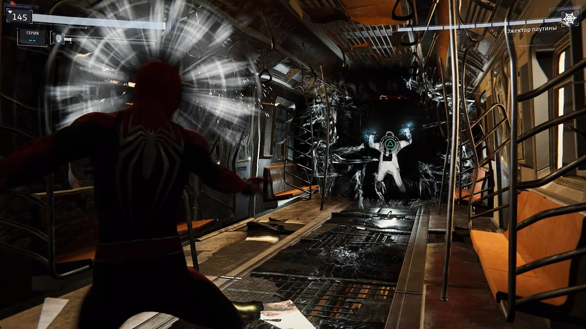 Бой с боссом проходит в вагоне. Нам нужно атаковать Ли и уворачиваться от его демонических атак. Время для уворота определяем по паучьему чутью. Можно обстрелять Ли паутиной и нанести удар.