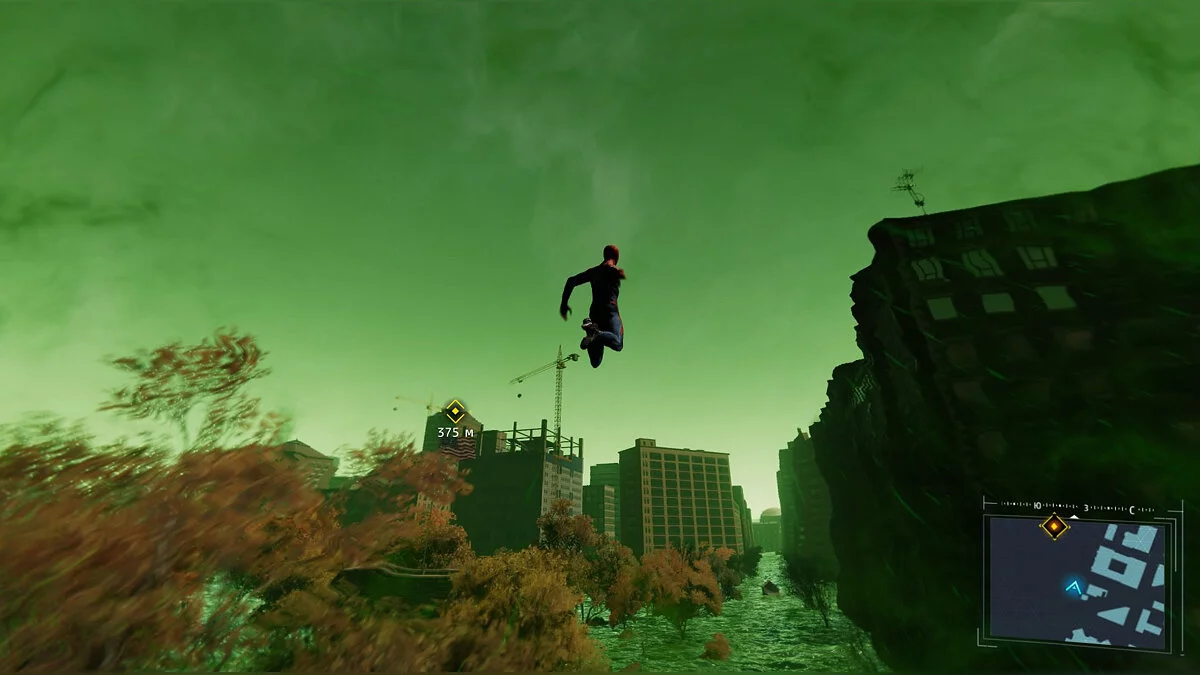 Выбираем сложность, смотрим вступление и отправляемся по указателю. Перемещаться по виртуальному Нью-Йорку довольно просто. Используем кнопки «R2» и «X», чтобы цепляться паутиной за здания, набирать скорость и подлетать как можно выше.